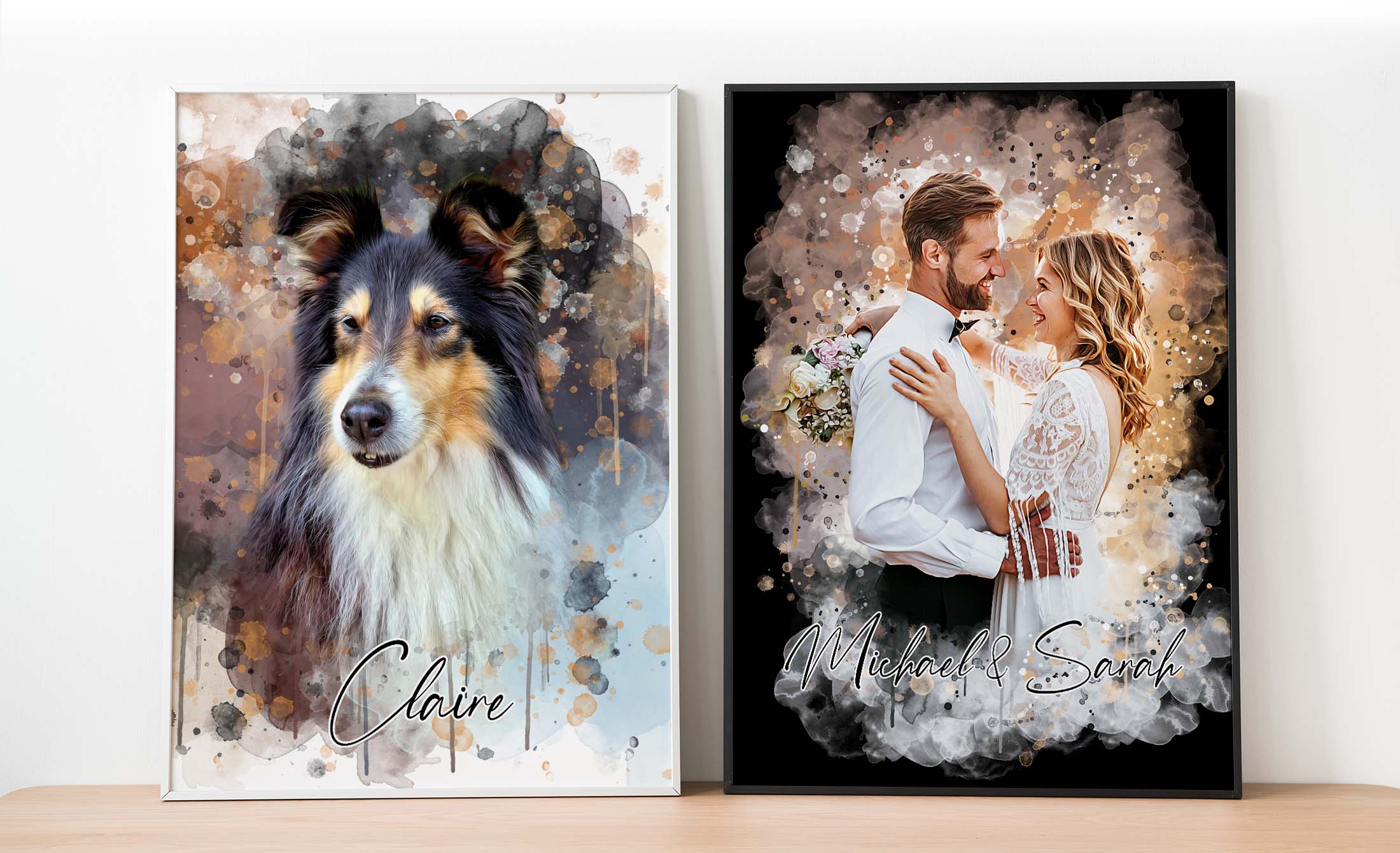 Portrait für Paare / Baby, Familie etc. im Wasserfarben-Stil